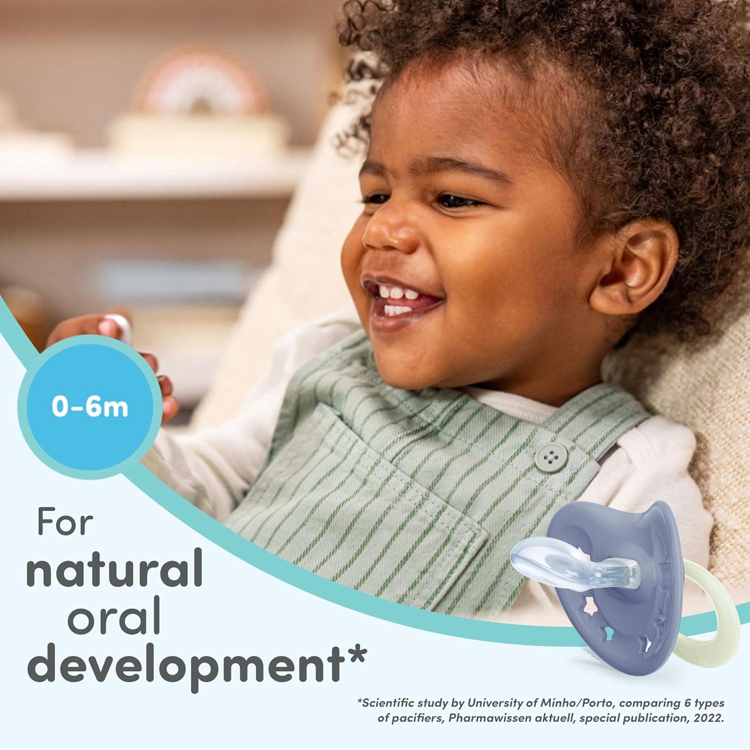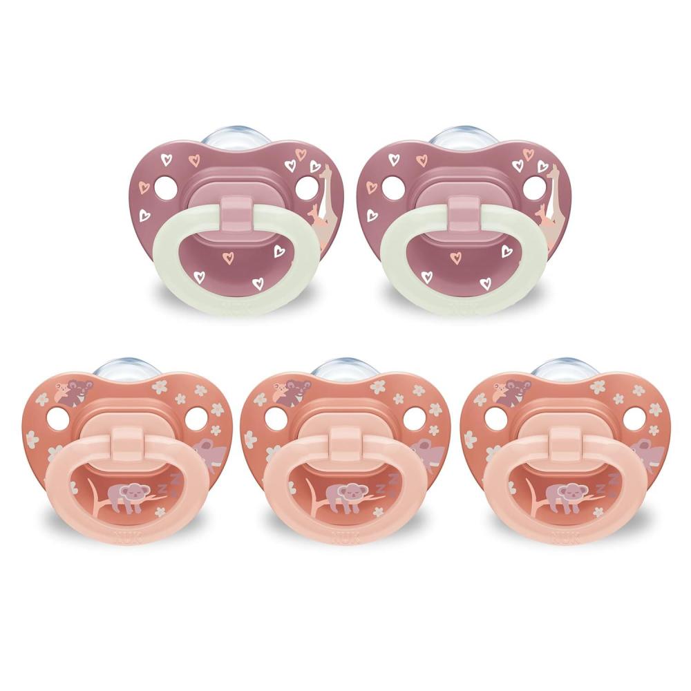 NUK First Choice Classic Orthodontic Pacifier, 6-18 Months Baby Pacifier, Purple & Blue, Baby Must Haves, 5-Pack(Orange & Pink)