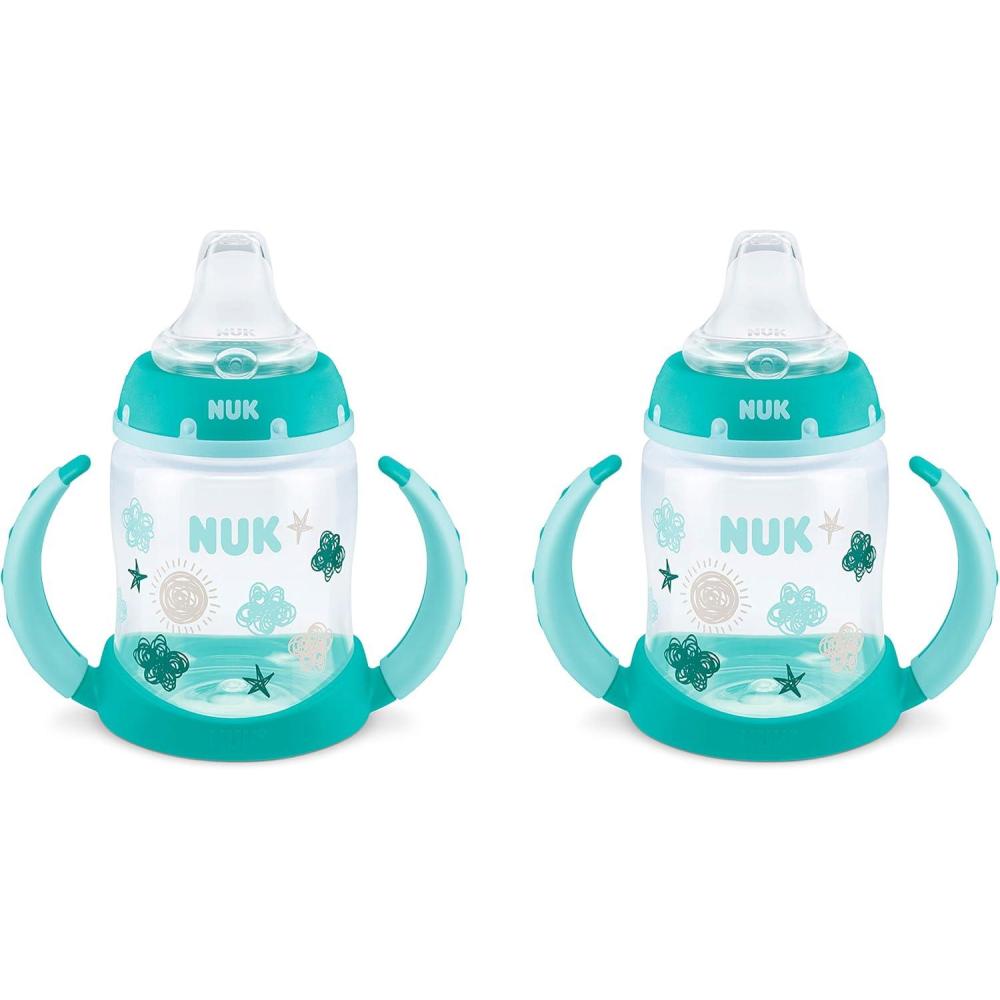 The NUK Learner Cup easily promotes a natural transition to baby's first cup. This learner cup features a spill-proof soft spout that is gentle on teeth and gums, and it includes an air vent that helps reduce swallowed air. The cup also comes with easy-to-grip, removable handles that your growing child will love. NUK Learner Cups are BPA-free and dishwasher-safe. Our 5-oz. learner cups are recommended for ages 6 months and older.
