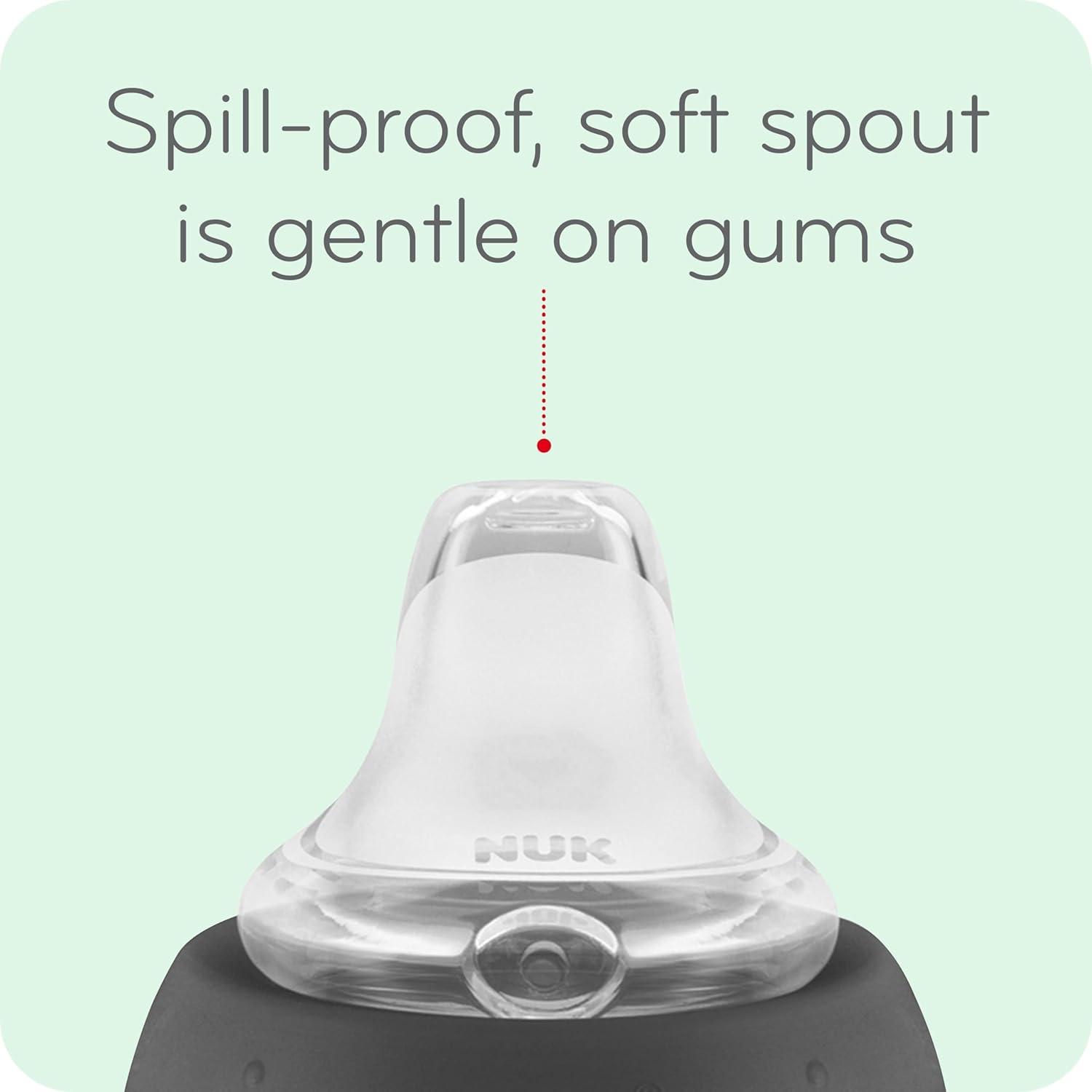 Spill-proof soft spout is designed to be gentle on gums; liquids flow easily when sipped