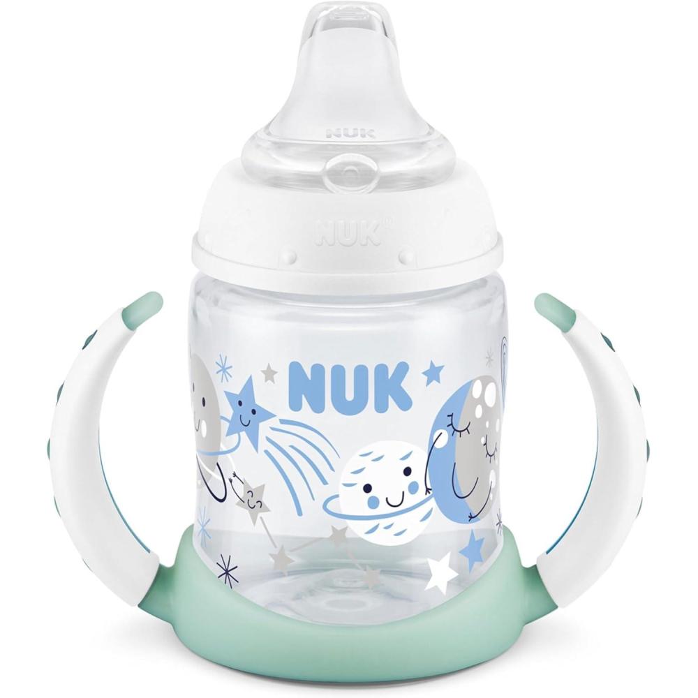 The NUK Learner Cup easily promotes a natural transition to baby's first cup. This learner cup features a spill-proof soft spout that is gentle on teeth and gums, and it includes an air vent that helps reduce swallowed air. The cup also comes with easy-to-grip, removable handles that your growing child will love. NUK Learner Cups are BPA-free and dishwasher-safe. Our 5-oz. learner cups are recommended for ages 6 months and older.