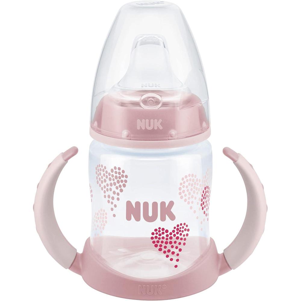 The NUK Learner Cup easily promotes a natural transition to baby's first cup. This learner cup features a spill-proof soft spout that is gentle on teeth and gums, and it includes an air vent that helps reduce swallowed air. The cup also comes with easy-to-grip, removable handles that your growing child will love. NUK Learner Cups are BPA-free and dishwasher-safe. Our 5-oz. learner cups are recommended for ages 6 months and older.