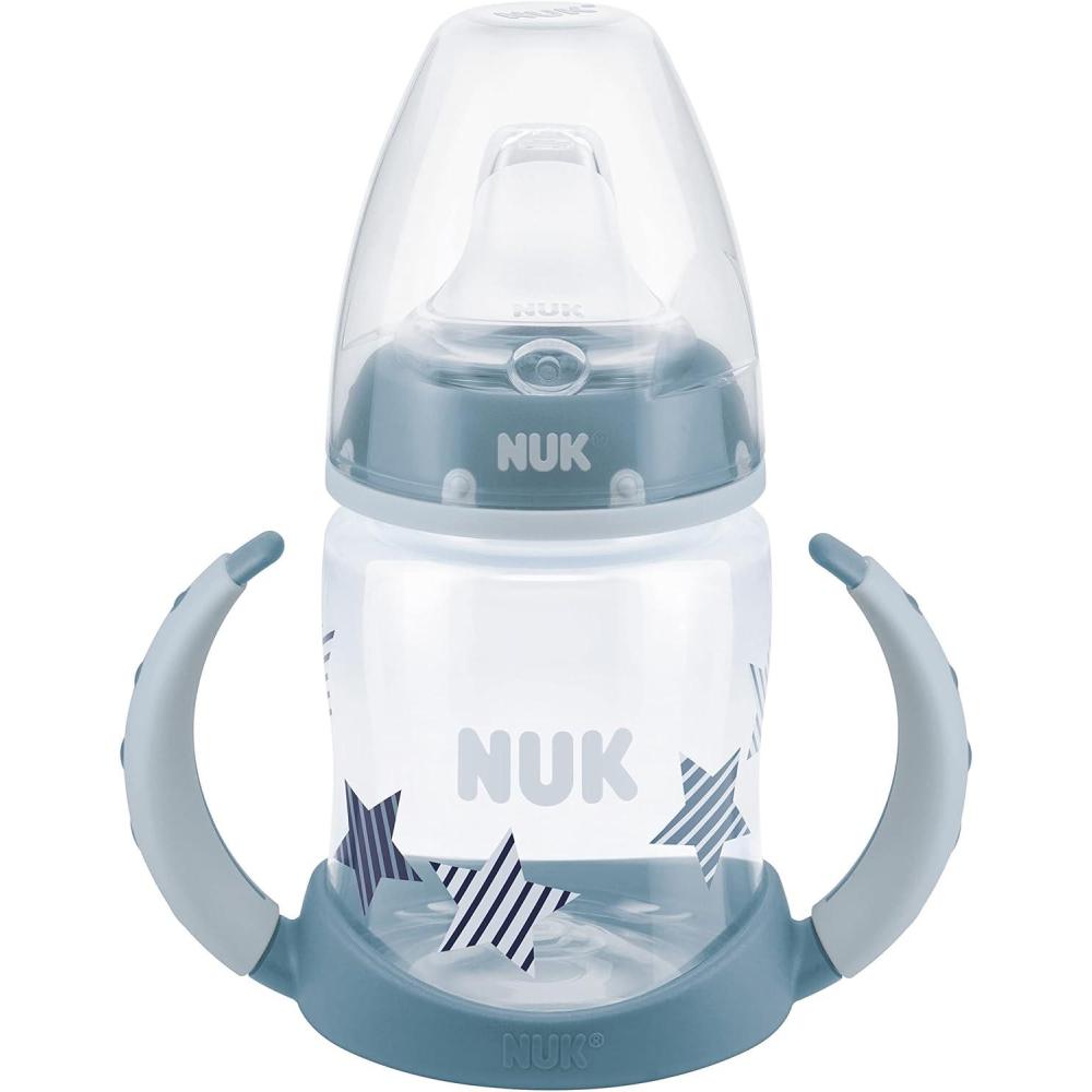 The NUK Learner Cup easily promotes a natural transition to baby's first cup. This learner cup features a spill-proof soft spout that is gentle on teeth and gums, and it includes an air vent that helps reduce swallowed air. The cup also comes with easy-to-grip, removable handles that your growing child will love. NUK Learner Cups are BPA-free and dishwasher-safe. Our 5-oz. learner cups are recommended for ages 6 months and older.