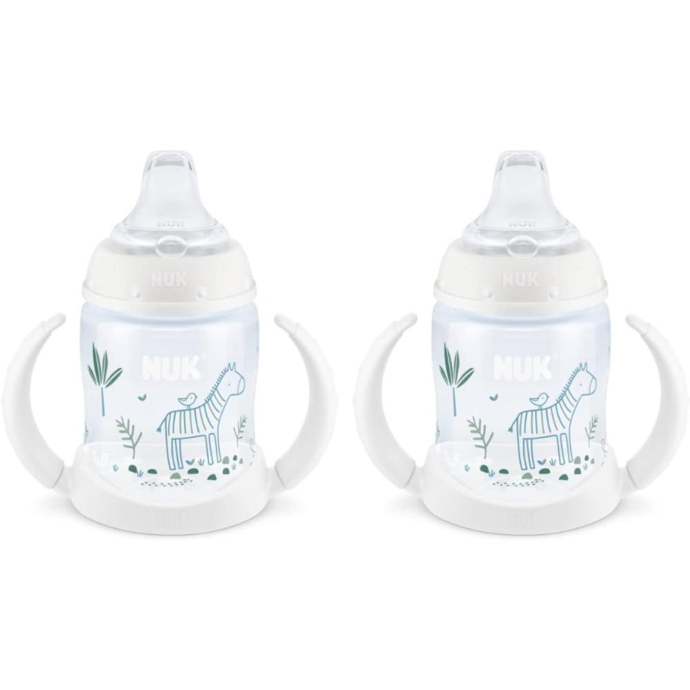 imageNUK Learner Cup Ms Rachel 5 oz 6 Months 2 Pack  Soft Spout EasyGrip Handles BPA Free Spill Proof Transition Sippy CupWoodlandsZebra